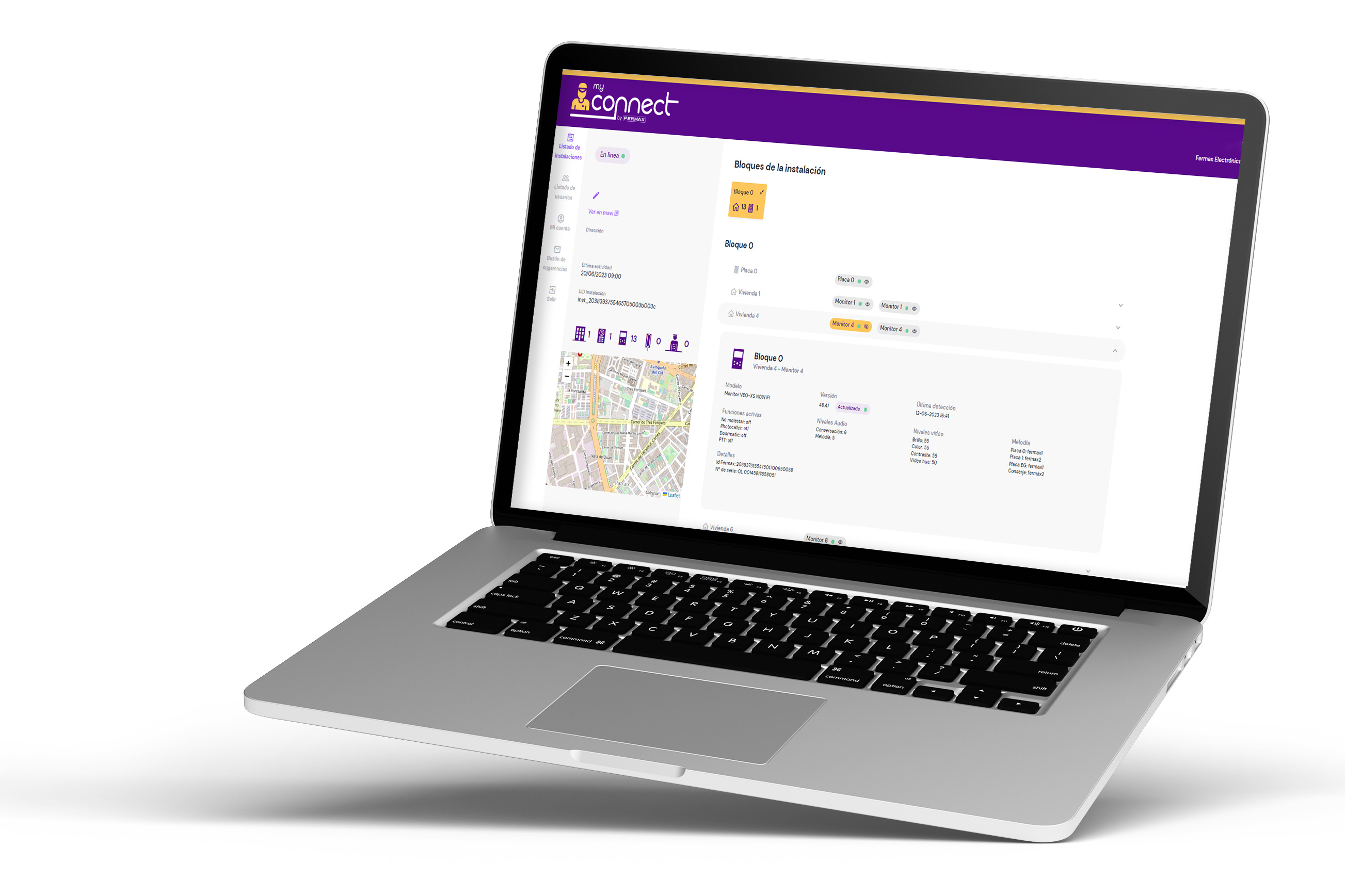 Acceso a cada instalación, consulta de los detalles del material instalado y detección remota de la incidencia ahorrando costes en desplazamientos.