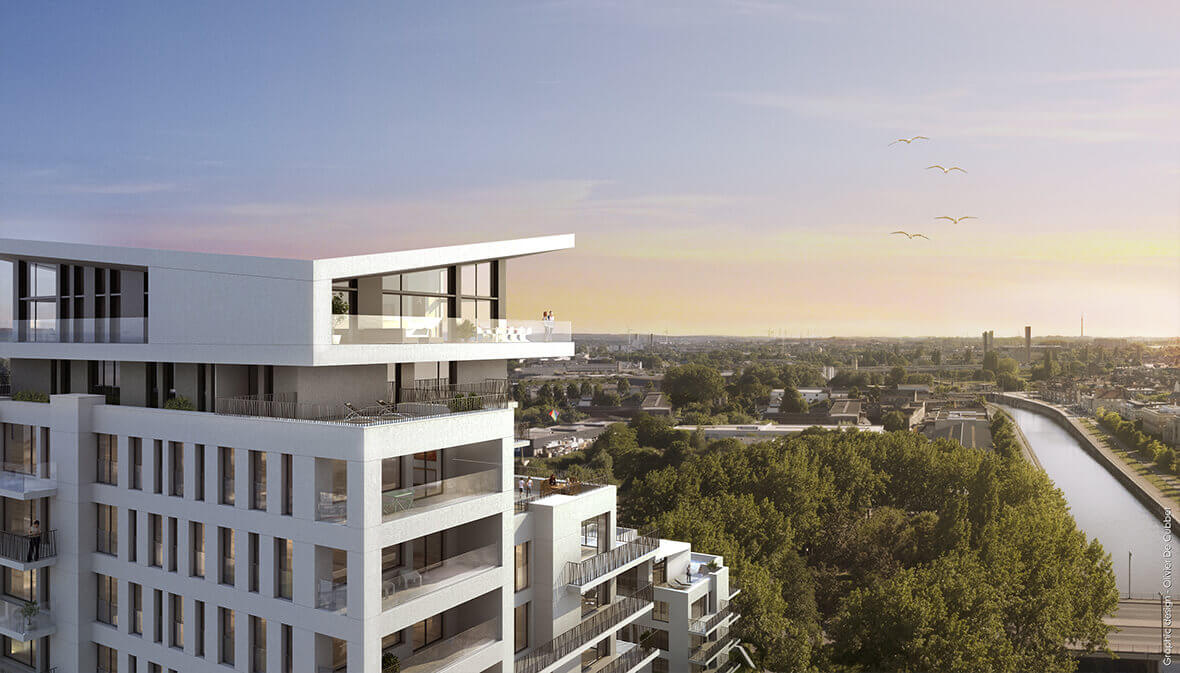 The Nautilus is a residential and commercial construction and urban real estate imagined by Axent architects. The project consists of 4 buildings articulated around a vast green esplanade allowing the harmonious cohabitation of apartments, shops and a nursery. This project stands out for its sober, contemporary and luminous architecture, dominated by a slender 65-meter tower offering exceptional views of the canal and Brussels. It is an emblematic and aesthetic development in a renovated district.