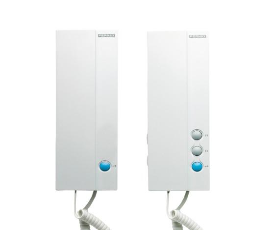 Kit bifamiliar audio con placa Cityline de empotrar y teléfonos Veo. Instalación analógica 4+N (4 hilos comunes y 1 hilo de llamada por vivienda). Alimentación 12Vca. Ampliaciones: 3 teléfonos adicionales; 2 placas adicionales (requerido ref. 8819)