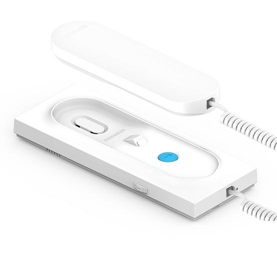 Fabricado en plástico ABS de alto impacto y con protección ultravioleta para que sea más resistente a la luz solar. El diseño único y exclusivo del auricular incorpora un imán que asegura un colgado correcto al finalizar la conversación.