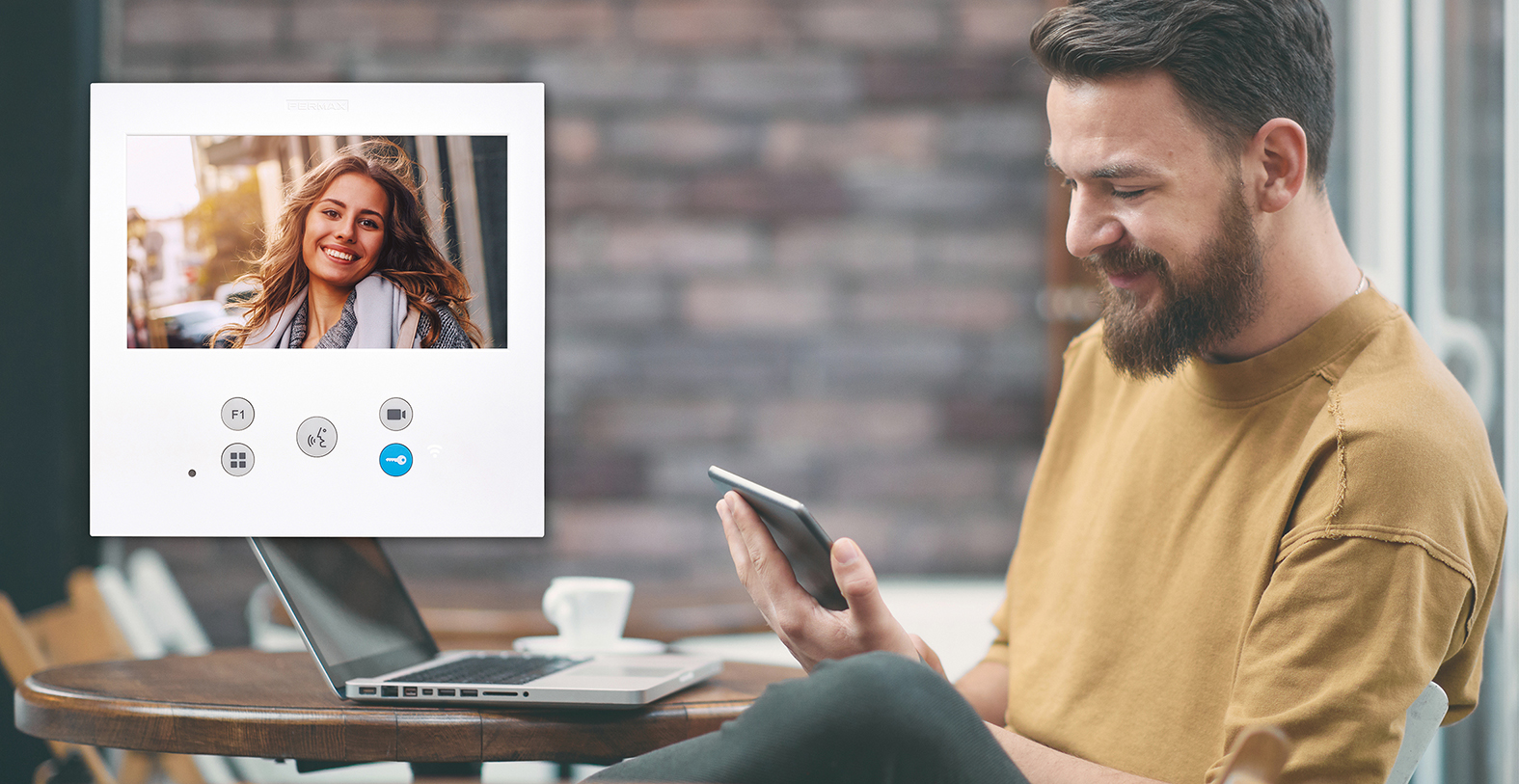 Con el monitor VEO-XL WiFi  el usuario podrá desviar las llamadas del videoportero a su teléfono móvil mediante la aplicación BLUE by FERMAX