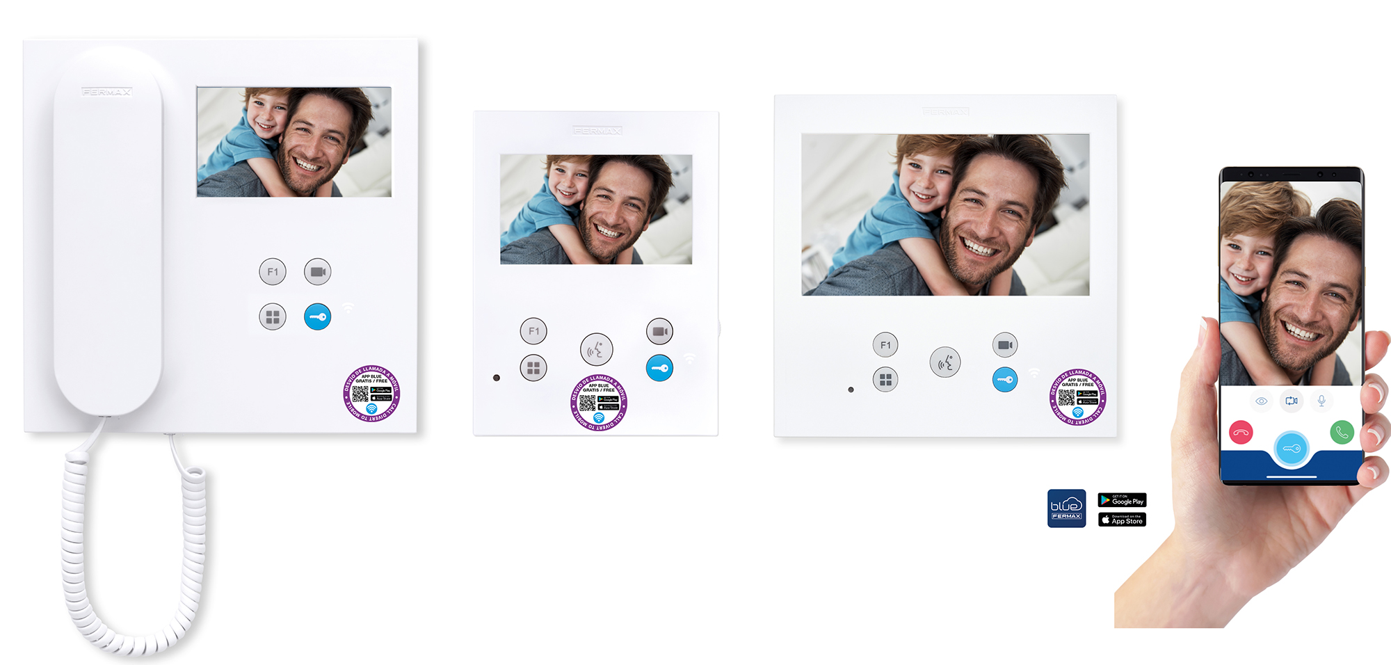 Hasta ahora, para ellos las diferencias entre un videoportero WiFi y uno normal eran casi imperceptibles a nivel estético. Por eso, a partir de ahora todos nuestros videoporteros WiFi tendrán incluida una pegatina QR para informar al usuario de que el monitor de su vivienda dispone de nuestro servicio de desvío de llamada a móvil BLUE by Fermax.